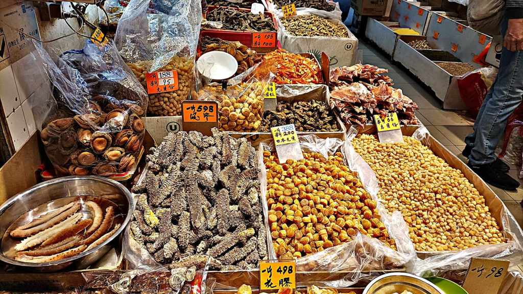 Tra gli avventori di bancarelle e negozi, le signore intorno ai sessant’anni sono sicuramente le più energiche. Gridano con una cantilena tipica del cantonese per invogliare la clientela a comprare. Ma si tratta di un suono troppo ripetitivo per attirare l’attenzione. Tanto più che i banchi sono già colmi di clienti che a loro volta interagiscono a voce alta. Forse contrattano sul prezzo.